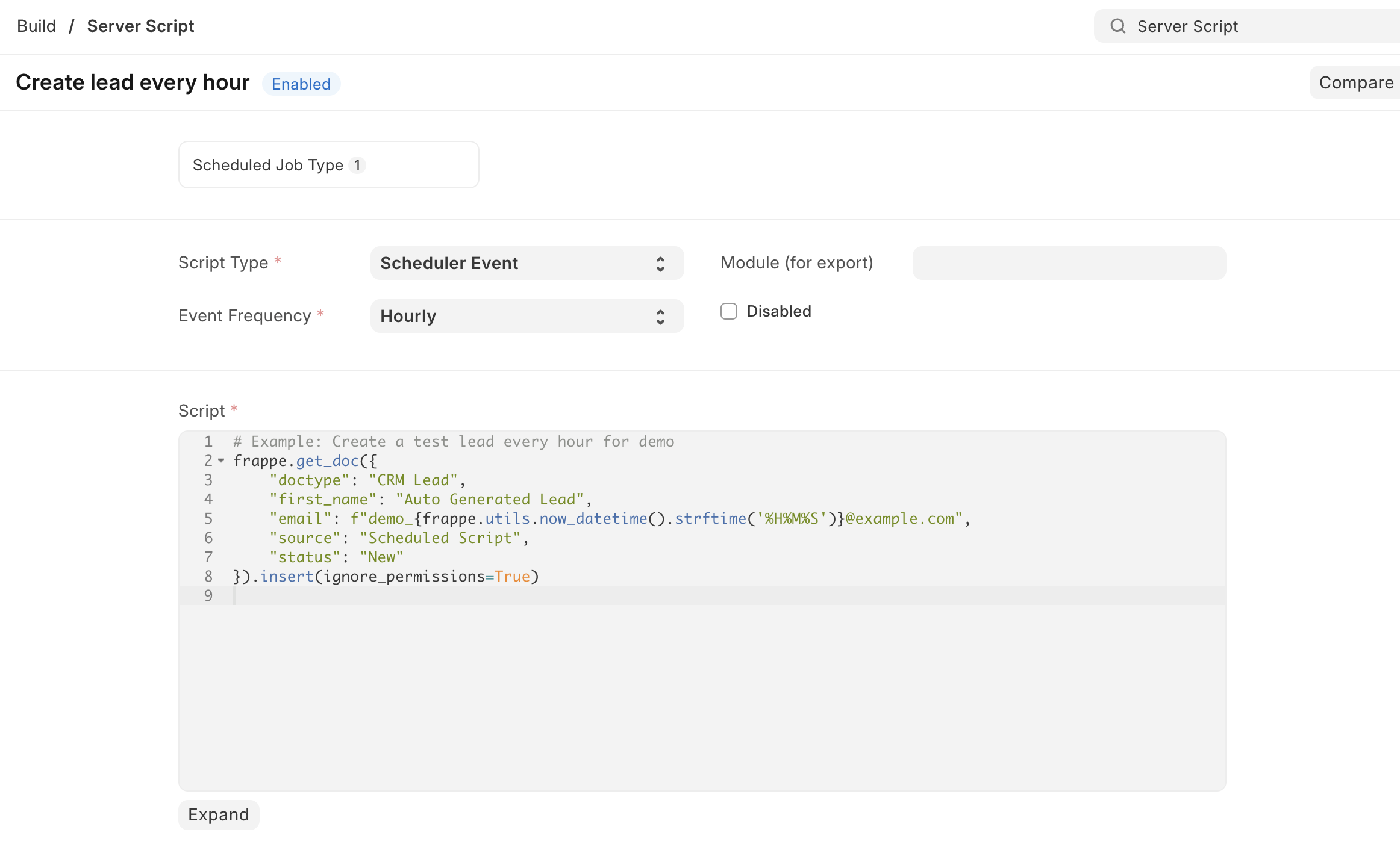 frappe.response["message"] = f"Lead created: {lead.name}"How to Use: