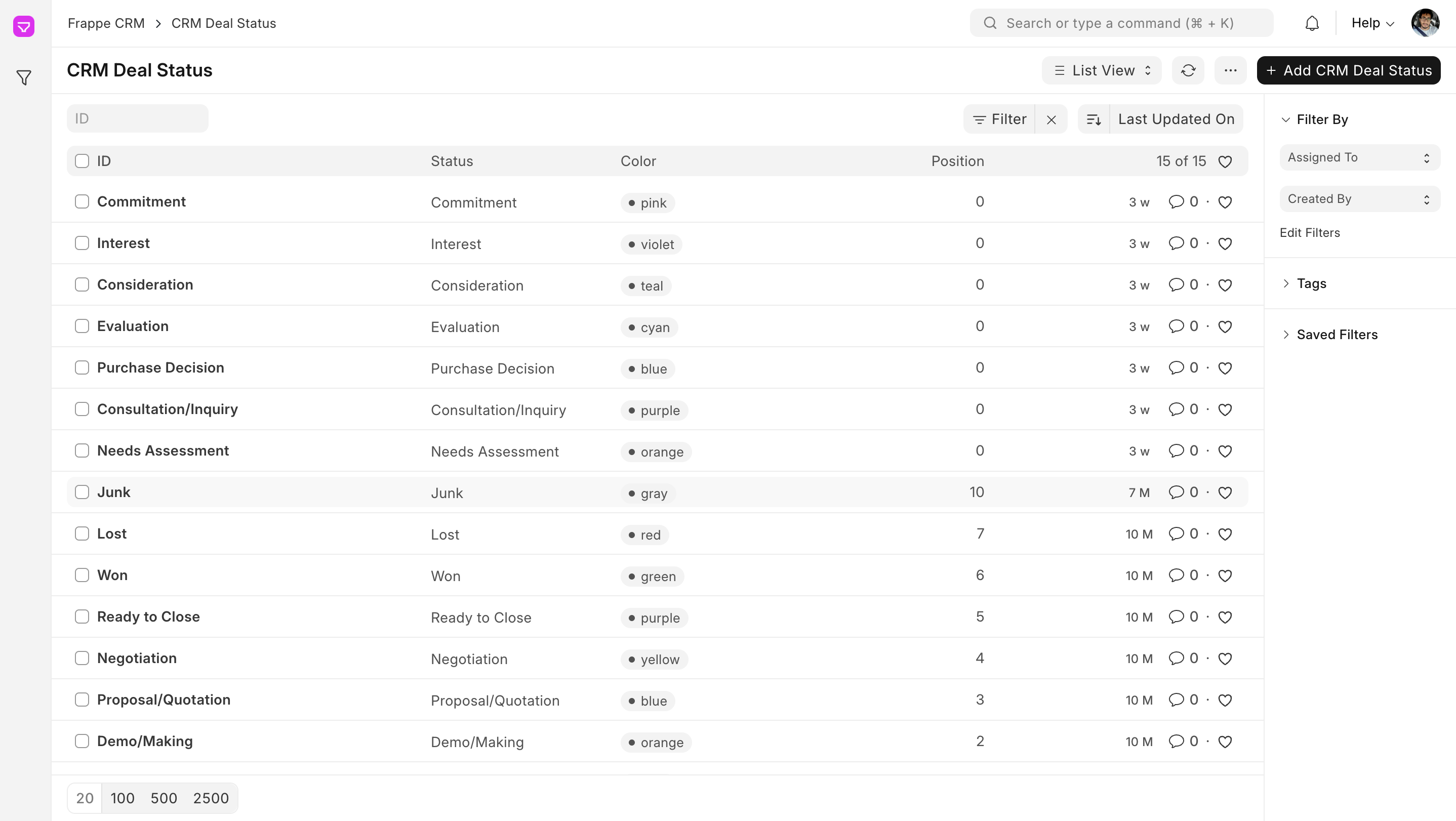 Custom Statuses allow you to tailor the status options available for Leads and Deals to your specific business requirements. By defining custom status lists, you can create more accurate and meaningful workflows that reflect your organization's unique processes.