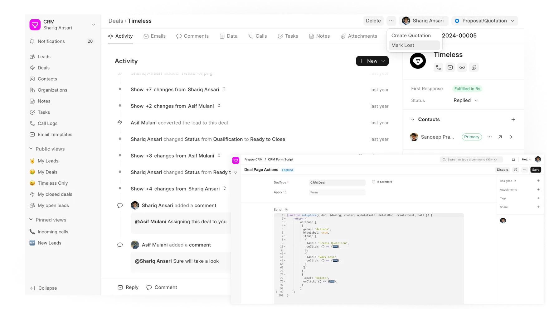 Repetitive tasks slow everyone down. Clicking through multiple screens to update a deal, send a quote, or mark a lead as lost? That’s wasted time.