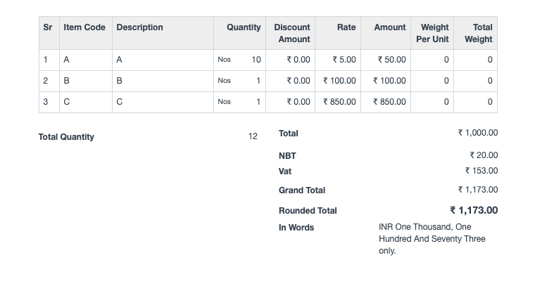 Consider a prospect wants to apply tax on a tax. Let's take an example tax (NBT) is to be applied on the net total amount of items and then apply another tax (VAT) on it. In the below example, tax NBT 2% is to be applied on sum of value of items, and then tax VAT 15%.