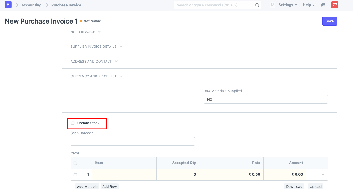 These additional charges once added, get added in the Item Valuation rate and update the Item Rate.
