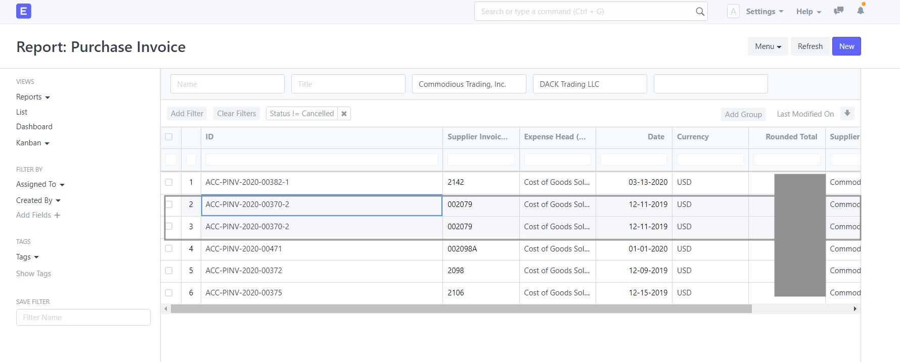 I have made a report on Purchase Invoice. Why following Invoice is being shown twice in the report?