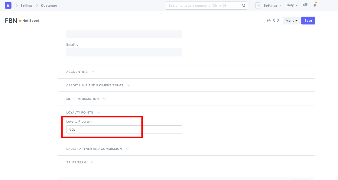 * Once the loyalty program is set, you can create a Customer and link the Loyalty program to it.