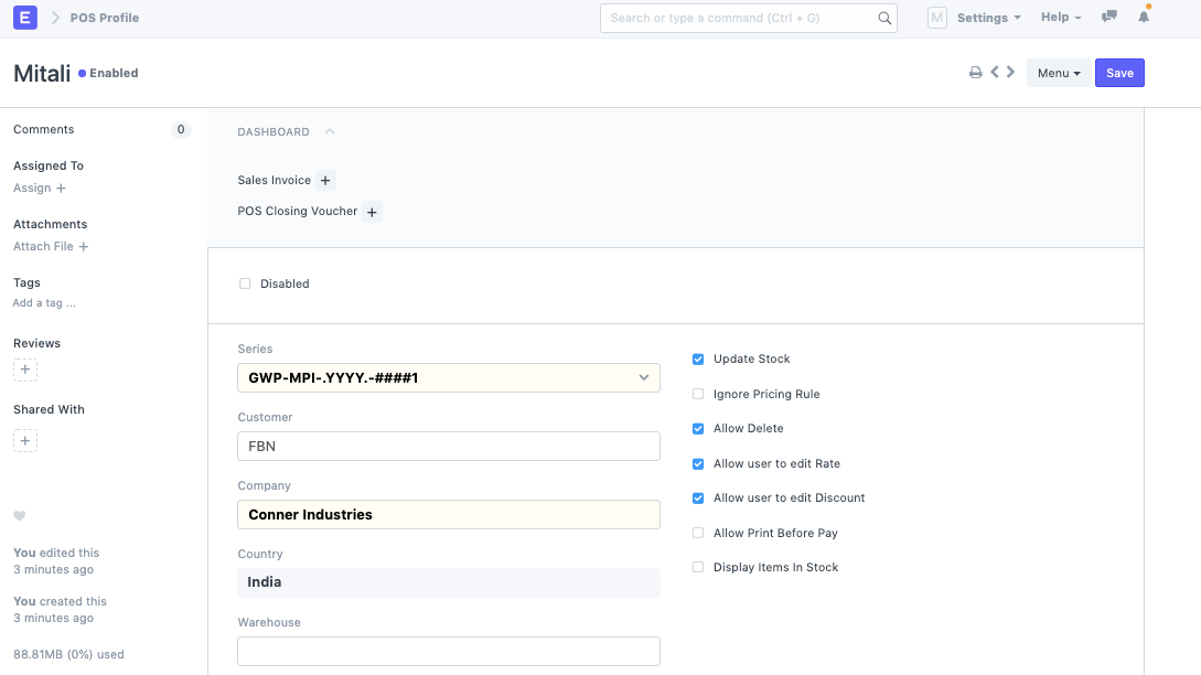 Once this Customer is linked to the Loyalty program, you can now setup your POS profile if it is not set yet: