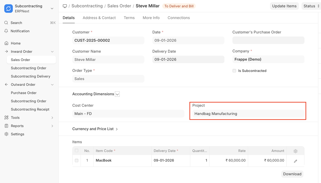 You can link a Project in all sales transactions like Sales Order, Delivery Note, Sales Invoice, and Payment. Linking your project with the sales transactions will help you track the income received against that Project.