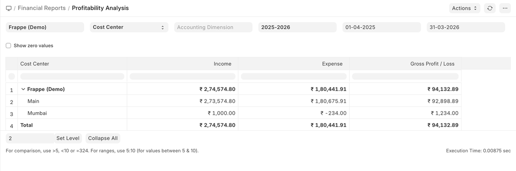 Project and related activities are generally active for longer periods. While developments keep happening on the Project, various transactions are done against each project. While new developments keep happening on a project, it may lead to more investment in terms of time, money, and material. Hence, it becomes important to track the Profitability of a Project to ensure that you don't overspend.