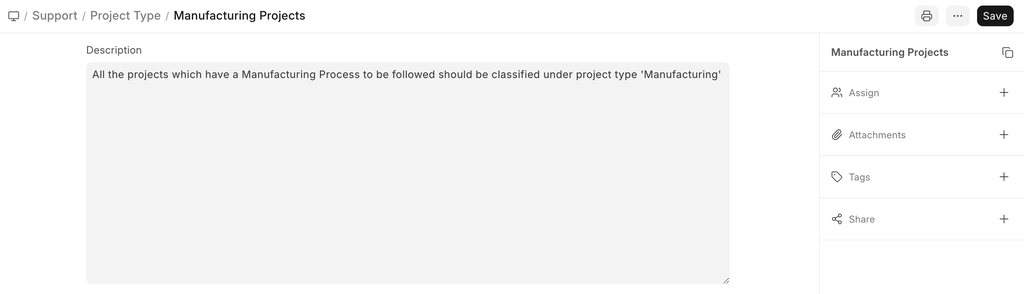 Internal Projects, External Projects could be examples of Project types and are already created in the system. You can choose to add more Project Types. This comes handy when you are reviewing the Projects, and you want to filter the information based on Project Types.