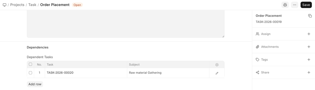 - Project: In case a task is added independently, you may choose to link the task to a particular Project. If the task is created from a Project, the details of the Project will get automatically added.
