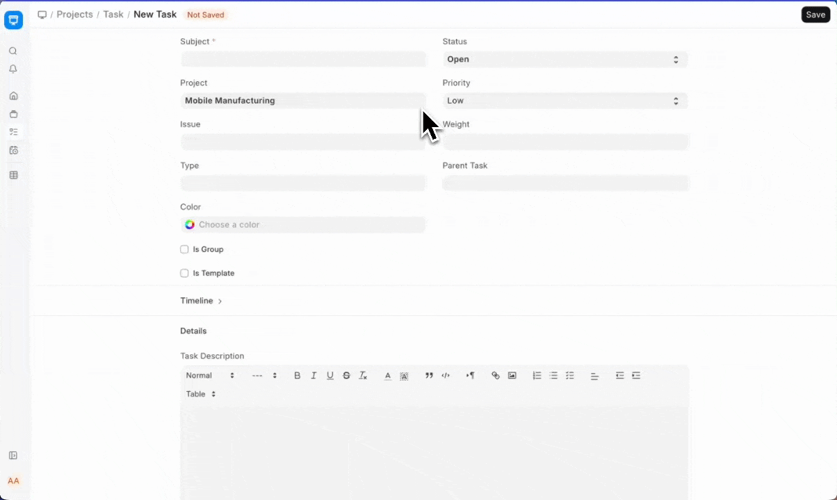 - Is Milestone: This box can be checked in the cases where a particular task is a Milestone in a Project.