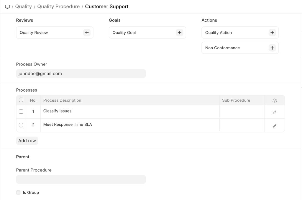 - Save. Quality Procedure can also be saved without entering the Process descriptions if the title is self explanatory.