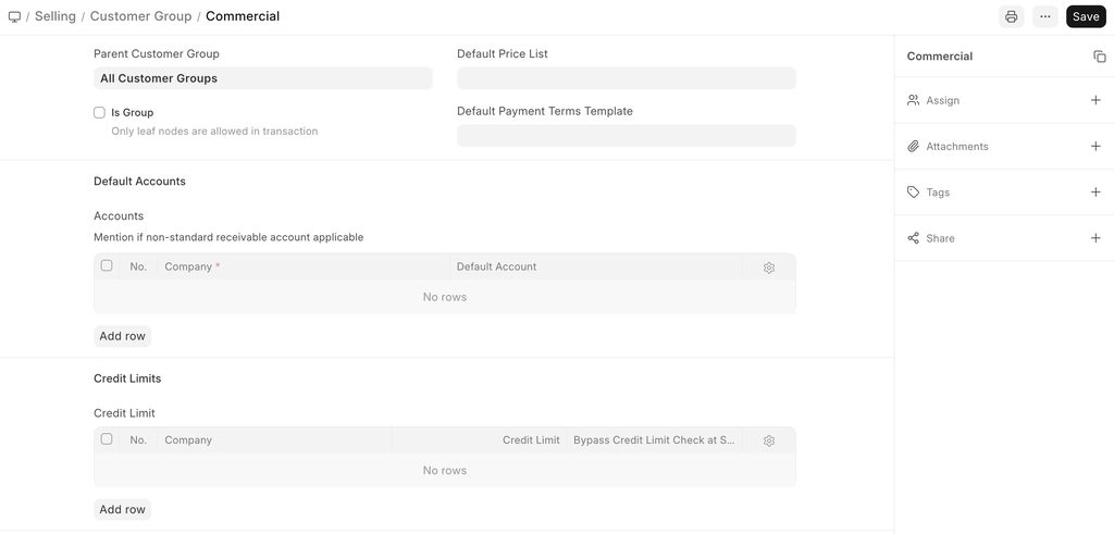 Assign Credit Limit, Default Price List, and Default Payment Terms Template