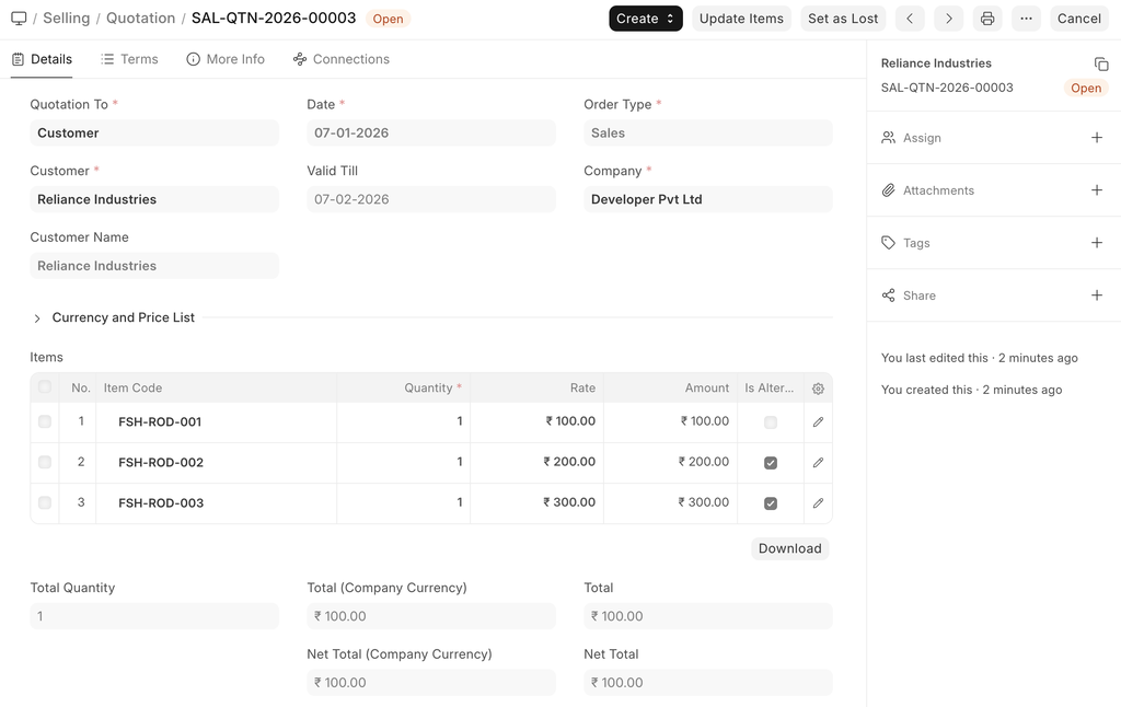 Home > Selling > Sales > Quotation
