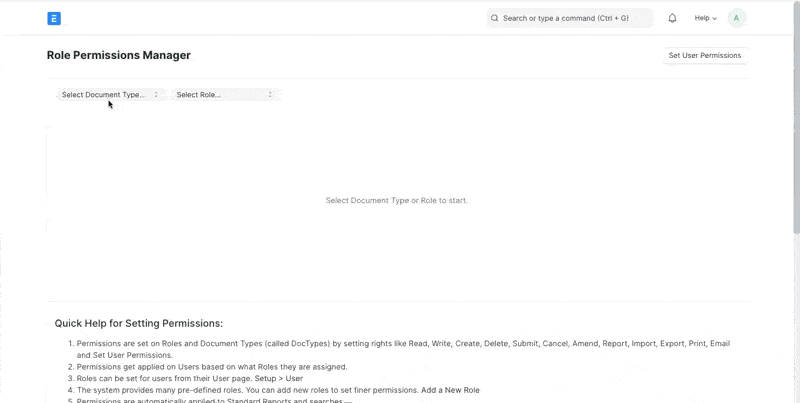Step 2: Go to Role Permission Manager, filter using the same Document Type (Sales Invoice in our example) and edit the permissions based on Roles
