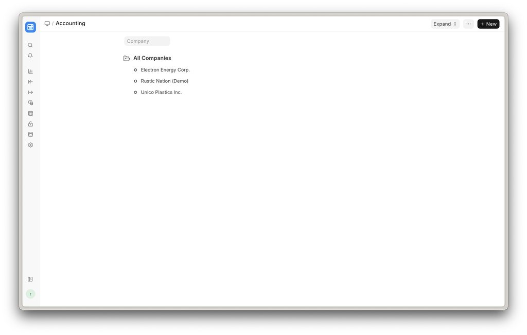 - Go to the Company list, click on New.