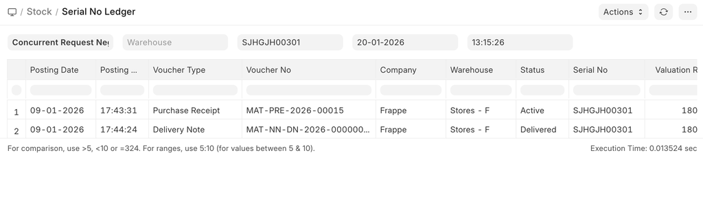 To check the history of serial numbers, see the report "Serial No Ledger".