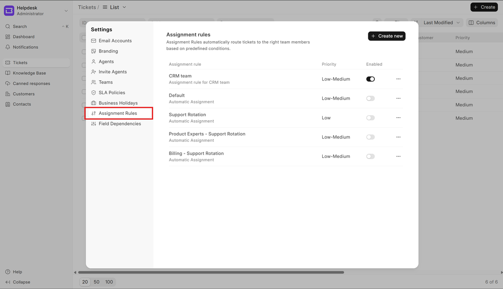 Assignment Rules automate the process of assigning tickets to specific agents based on predefined conditions. This streamlines your workflow and ensures tickets are directed to the most qualified agents for faster resolution and improved customer experience.