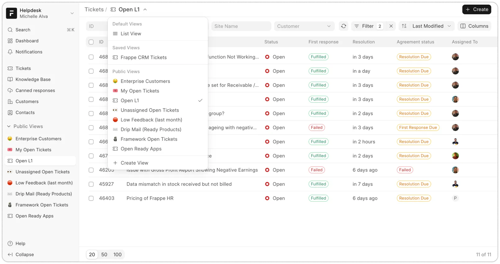 As your ticket volume grows, so does the need to stay organised. Mjara Helpdesk lets you create saved views based on filters like team, status, priority, or custom fields. You can set up views like “Urgent Tickets,” “My Team’s Tickets,” or “Tickets Waiting on Customer.” Keep them private if you prefer working a certain way, or share them with others to stay on the same page.