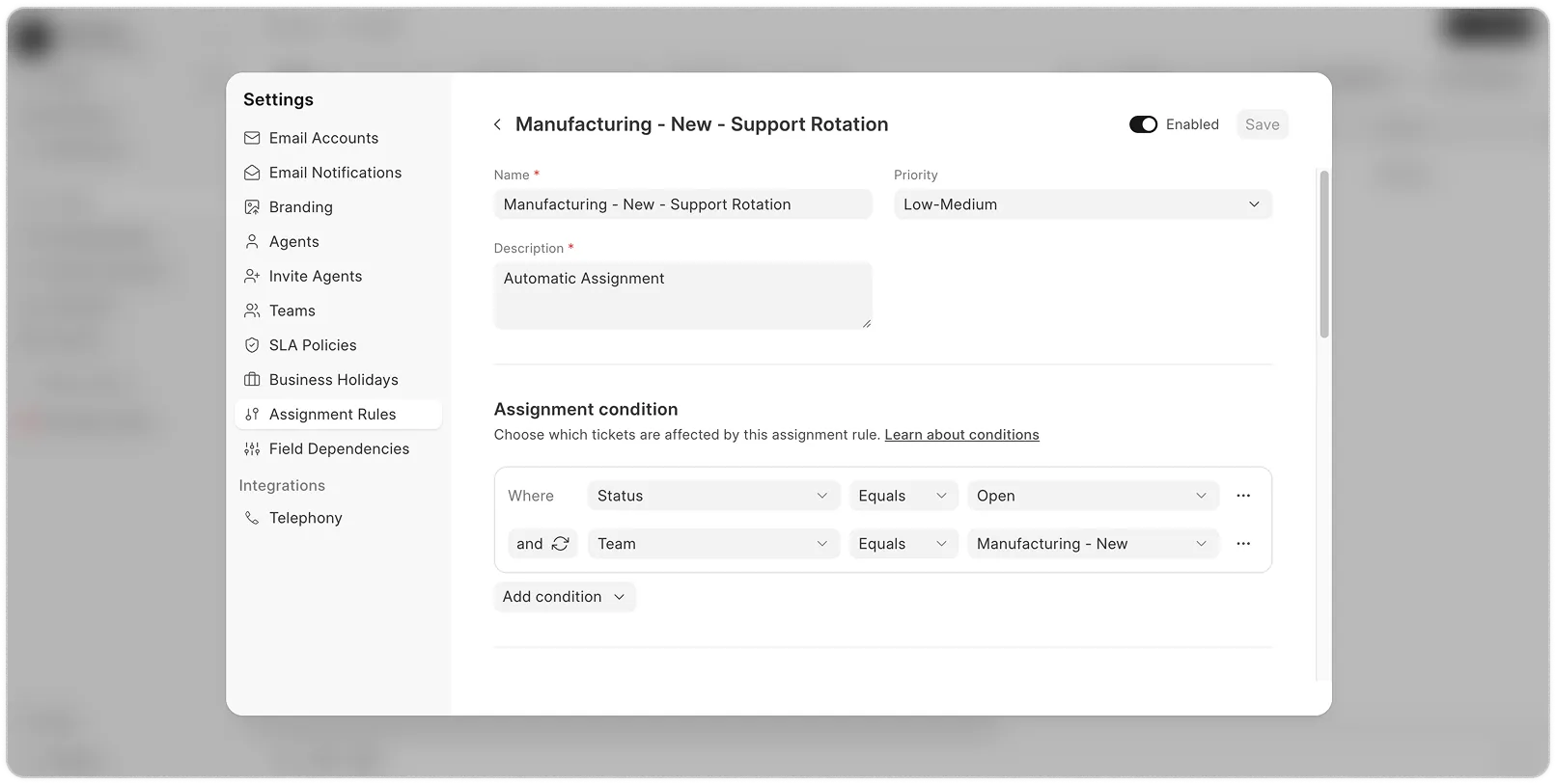 Once your SLA is set, you can use Assignment Rules to automatically route tickets to the right agents based on conditions.
