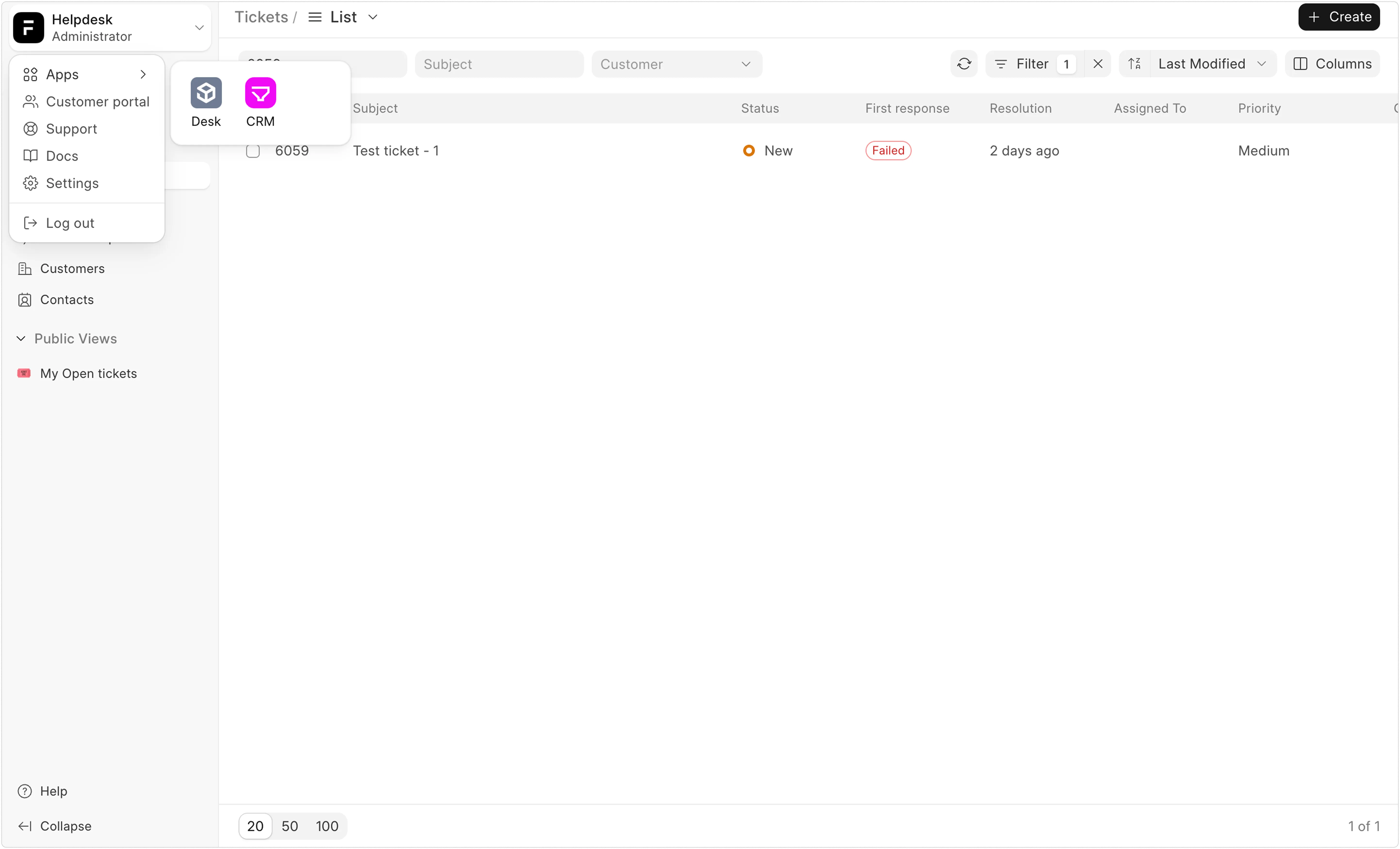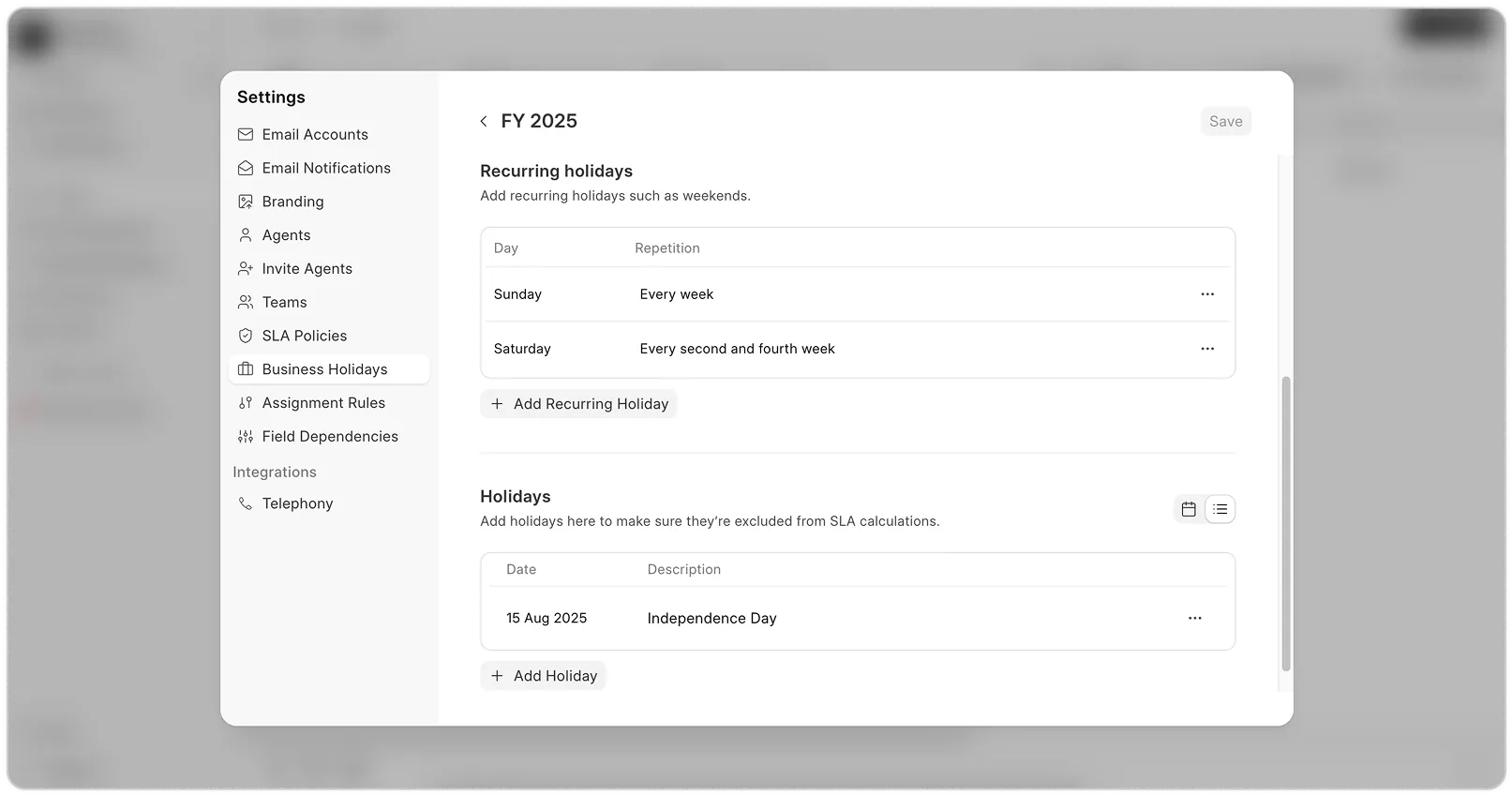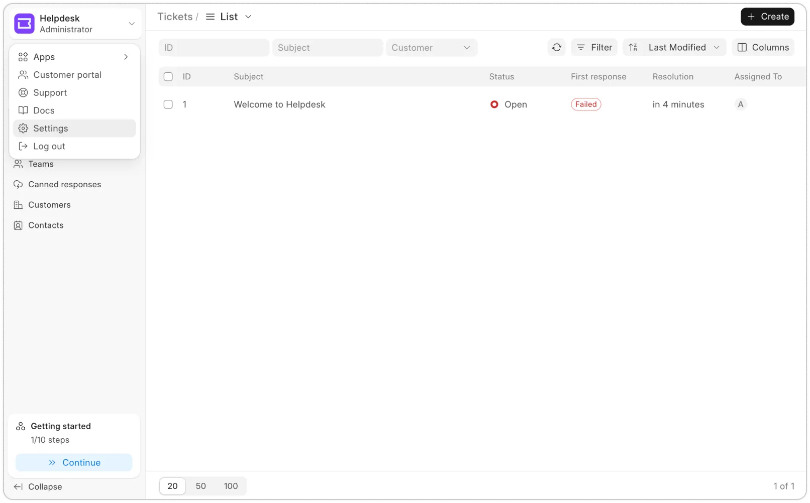 Customer portal: Where customers can raise tickets and track updates. To access this, go to Settings → Customer Portal.