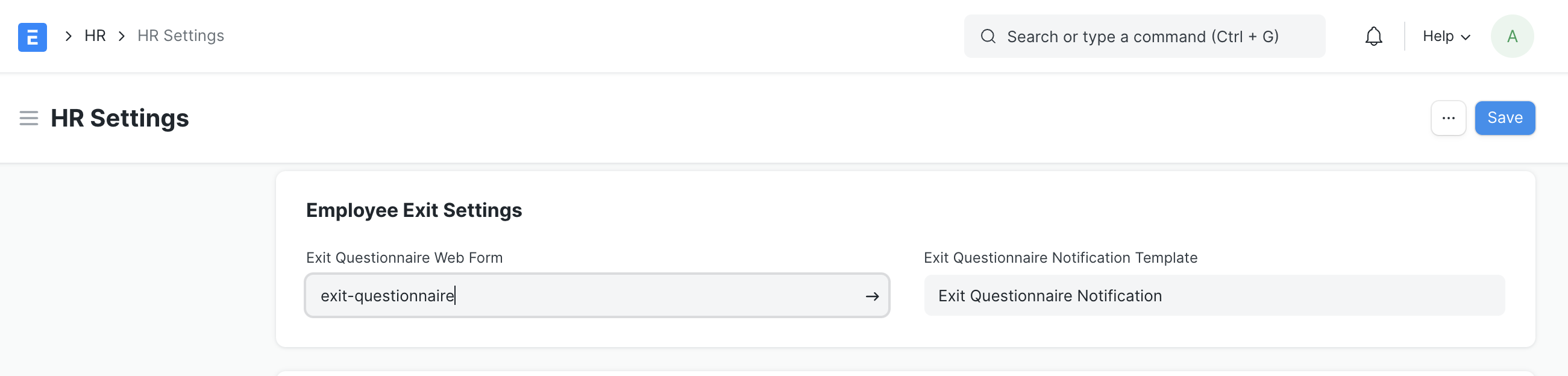 - Since exit questionnaires will differ from company to company, you can create your own Questionnaire as a Custom DocType [Documentation]. For eg, we have created a sample custom doctype for the same: