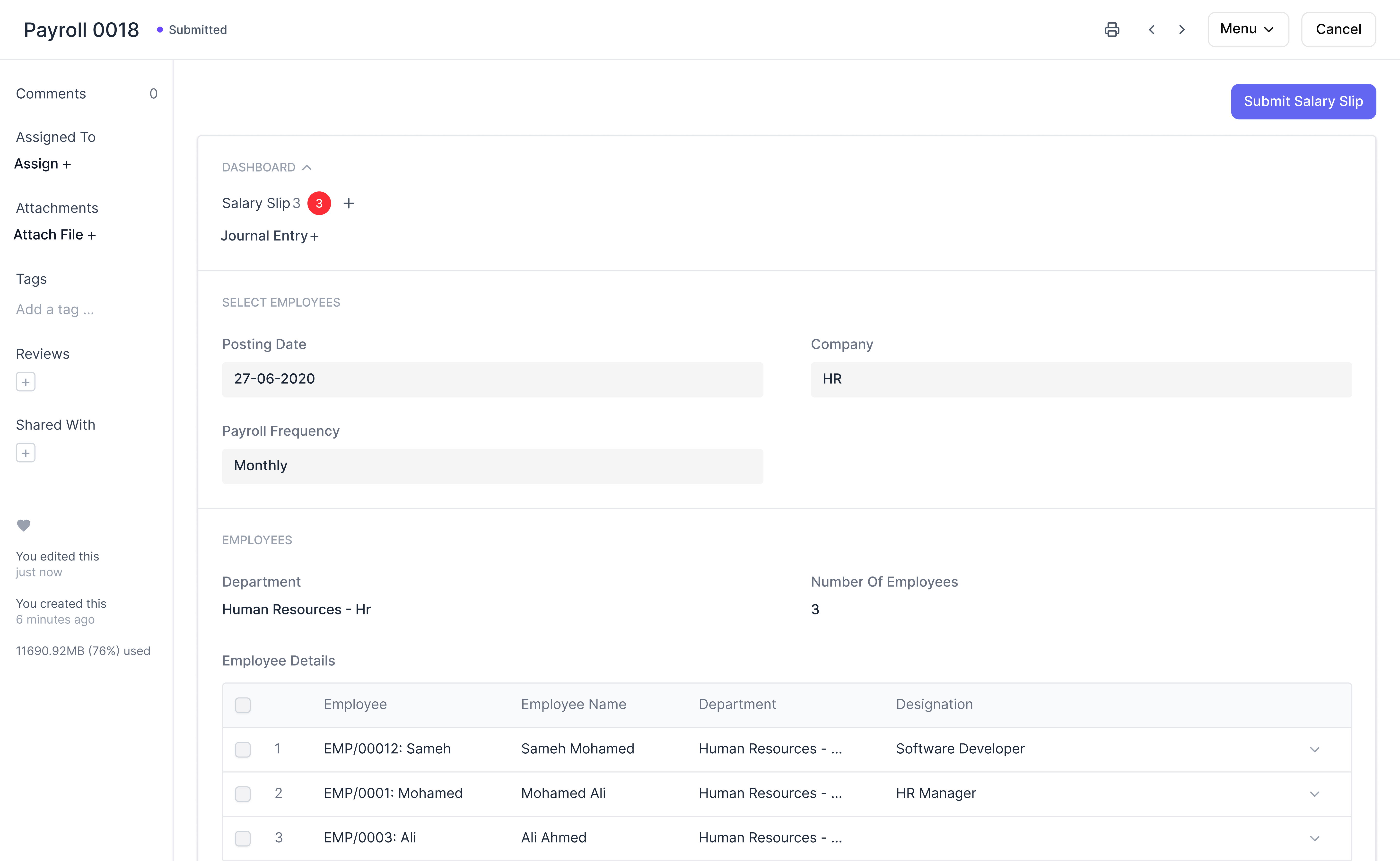 7) Create a Payroll Entry & Salary Slips