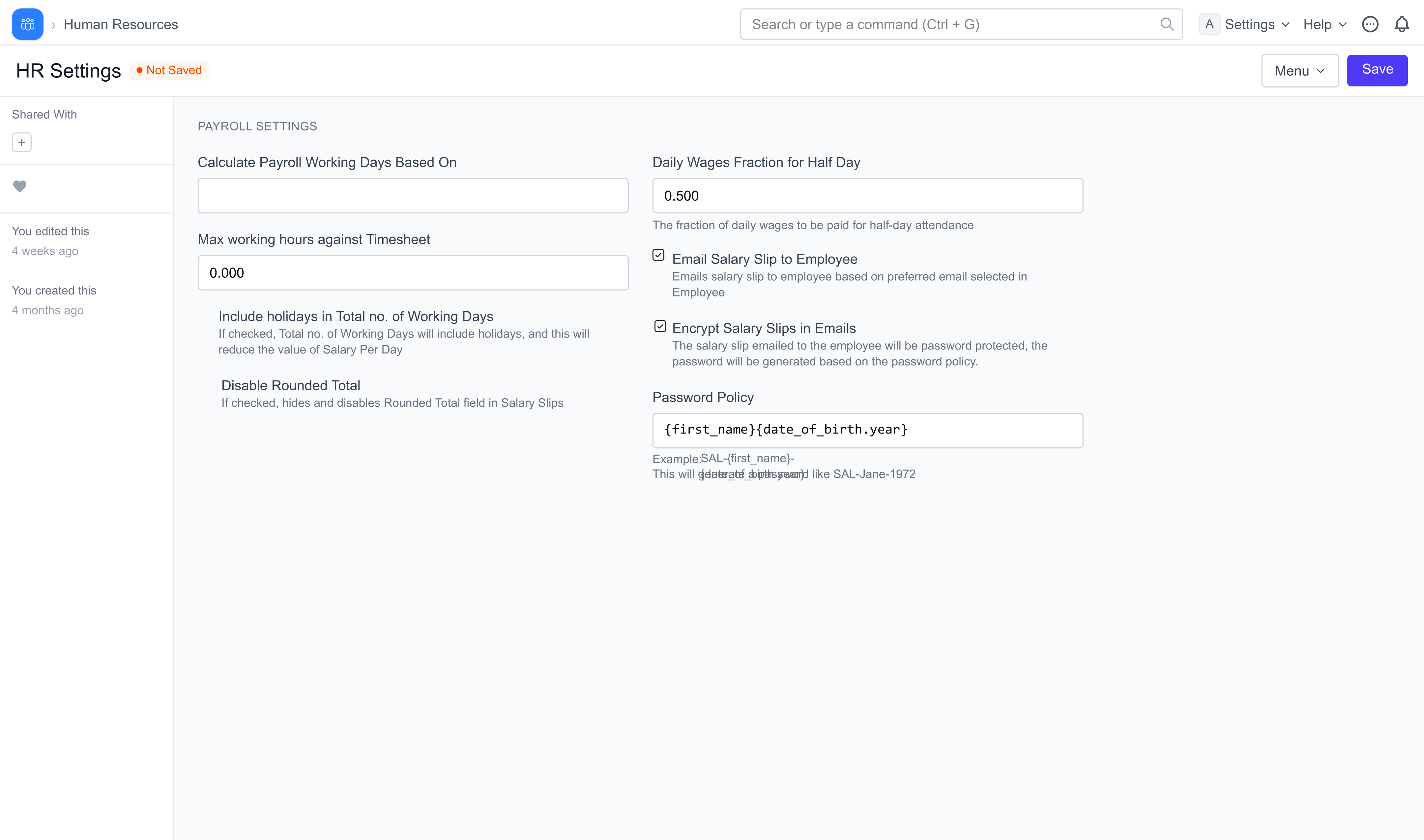 The salary slip PDF sent to the employee is encrypted using the mentioned Password Policy.