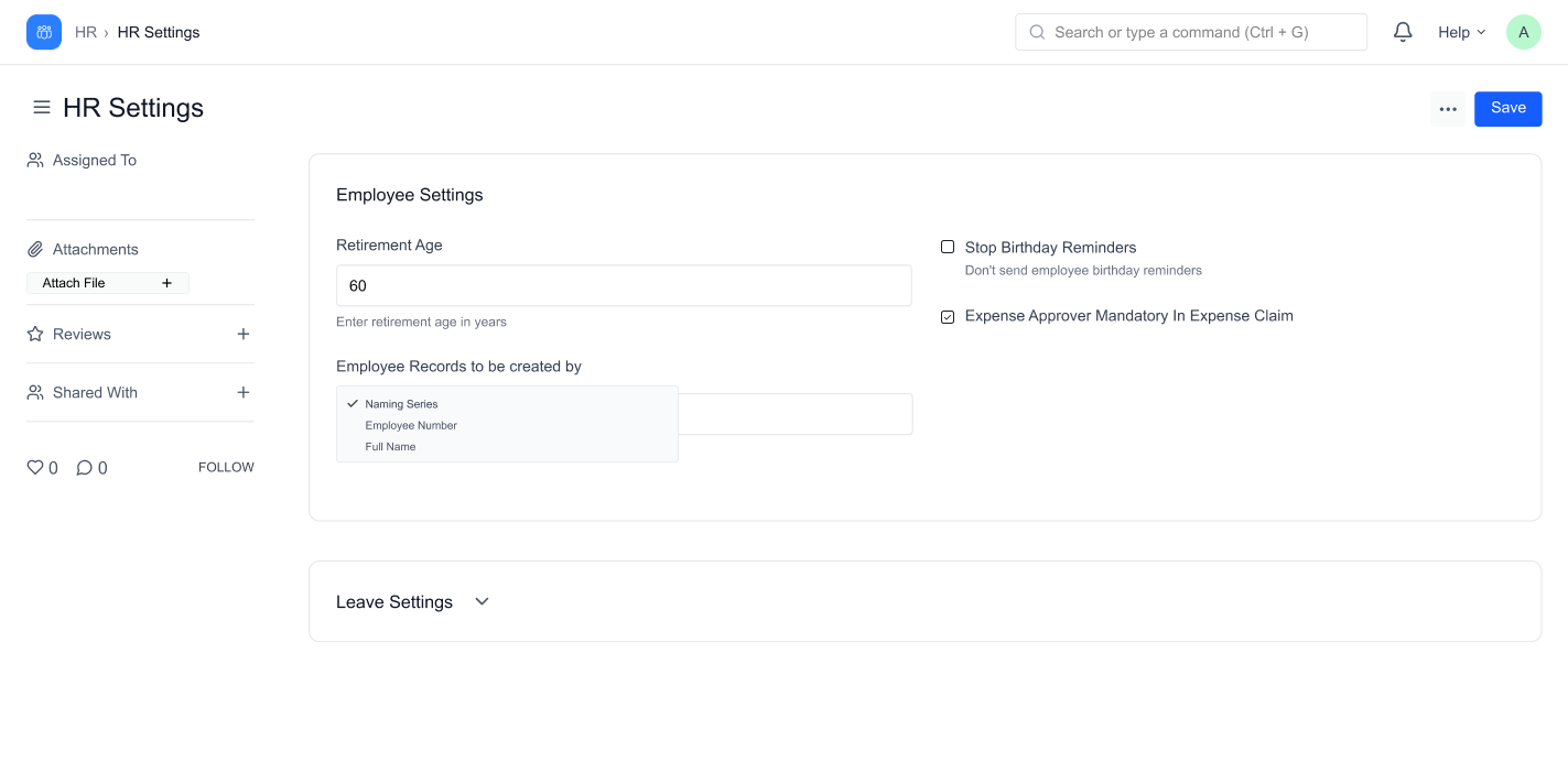 - Employee Number: The Employee Number field becomes visible in selecting this field, and the naming of the employee document happens based on this field.