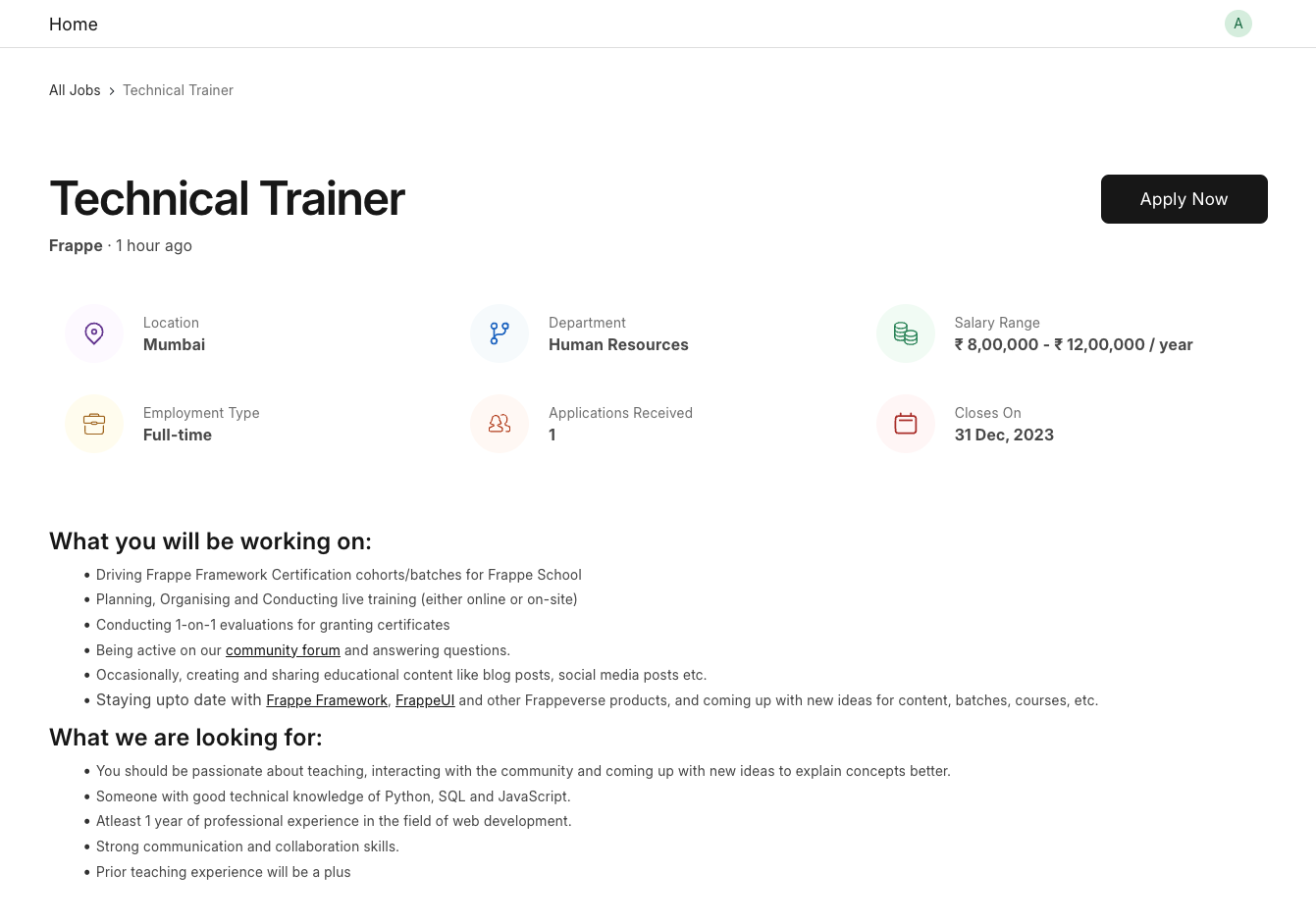 The Job Portal provides an interface for applicants to browse and apply to published Job Openings.