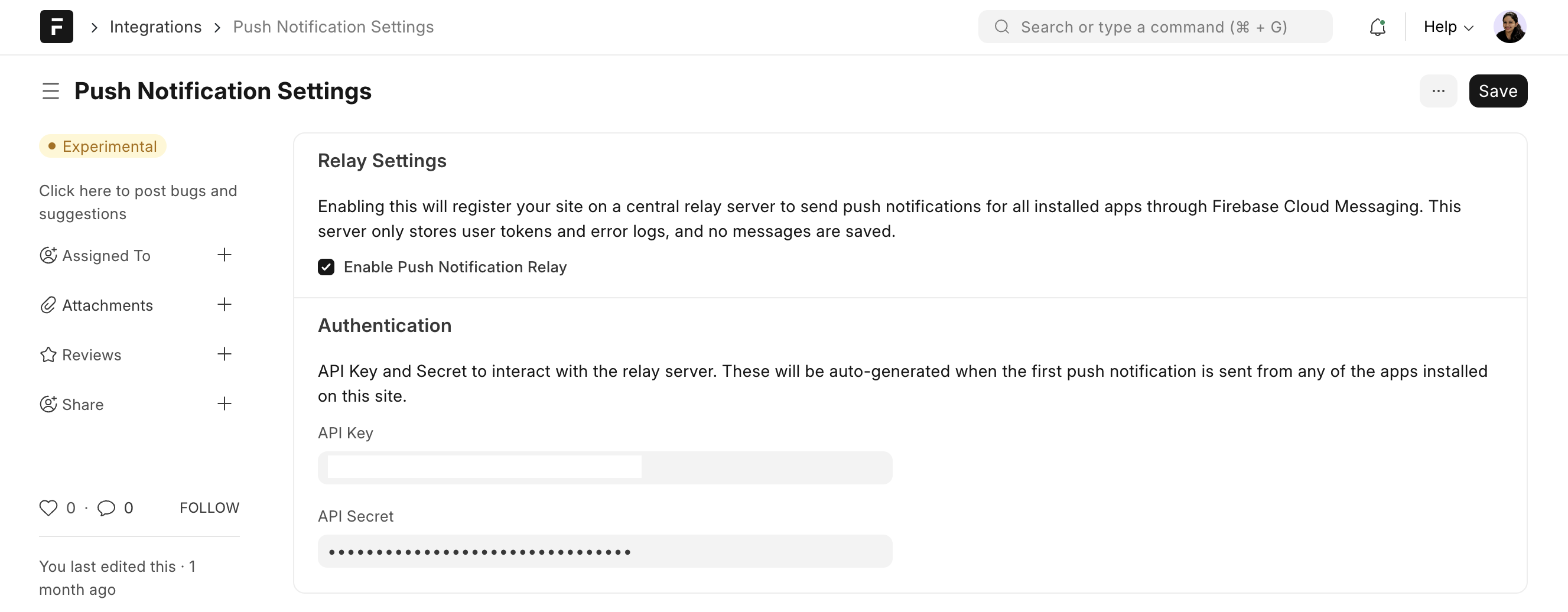Integrations > Push Notification Settings